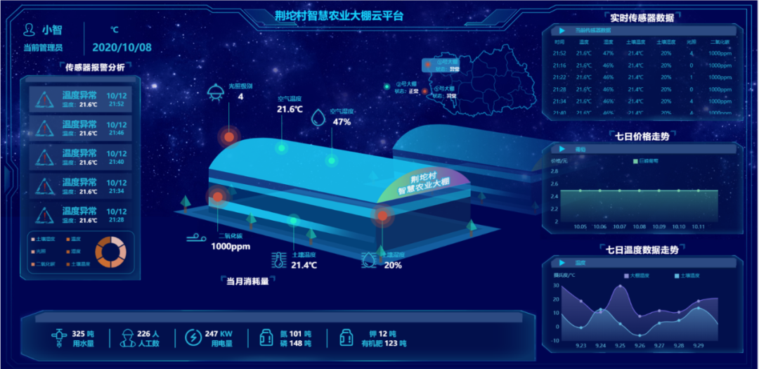 該項目運用物聯網和人工智能技術,計算機教研室郭迎九教授團隊有效利用各種農業資源,減少農業能耗,降低成本,減少生態環境破壞,實現農業生產的精準化種植、可視化管理和智能化決策,提高荊坨村農業大棚智能化管理水平,實現農產品優質高產。