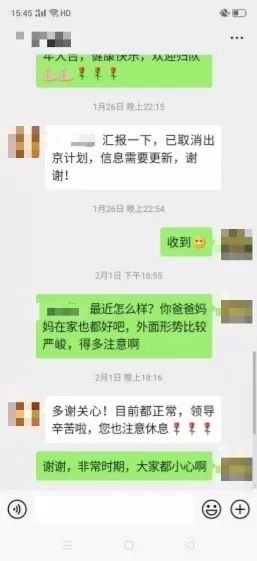 主動(dòng)關(guān)心詢問(wèn)在京自我隔離教職工個(gè)人及家屬身體狀況,是否有什么困難等。
