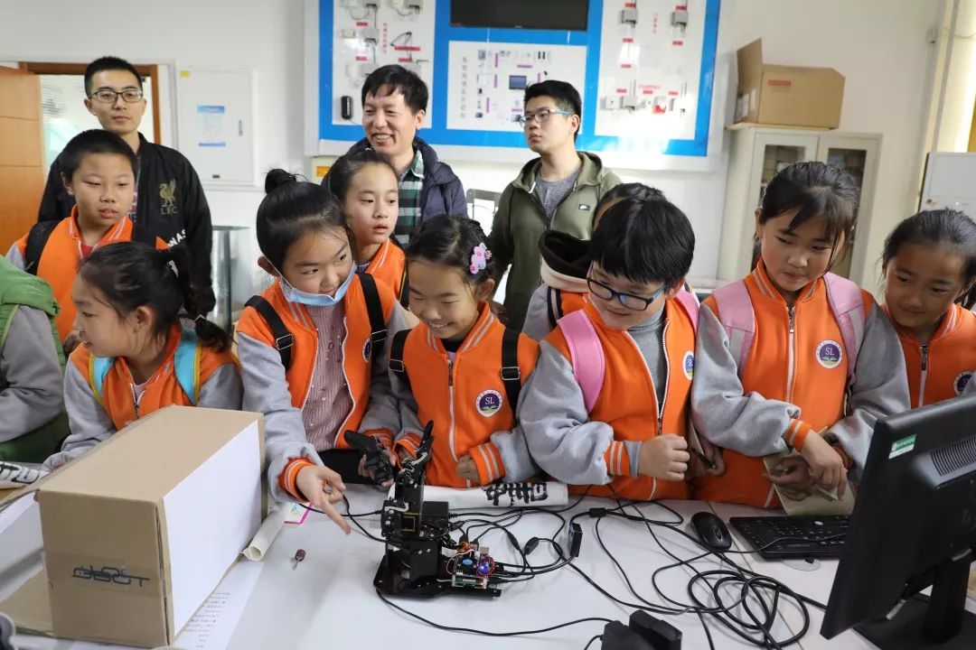 按照“不忘初心、牢記使命”主題教育部署的要求,為了踐行黨的“全心全意為人民服務(wù)”的宗旨,為人民群眾做一件好事實(shí)事,2019年11月1日下午,信息黨支部第5黨小組代表學(xué)部接待了沙嶺實(shí)驗(yàn)學(xué)?!白哌M(jìn)北城”實(shí)踐課程的50余名五年級(jí)學(xué)生,并組織了信息工程技術(shù)相關(guān)展示課程,旨在開闊小學(xué)生視野,激發(fā)他們的大學(xué)夢想,提升北城實(shí)驗(yàn)學(xué)校學(xué)生的幸福感。信息學(xué)部提供的體驗(yàn)課程包括跳舞機(jī)器人展示、機(jī)械手互動(dòng)、大數(shù)據(jù)實(shí)驗(yàn)室參觀、學(xué)生作品參觀及地鐵軌道車輛參觀。