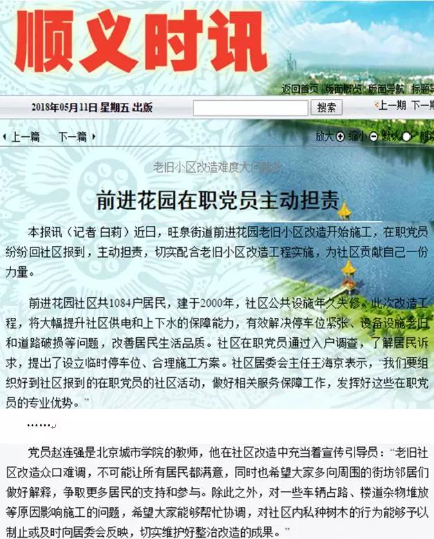 《順義時報》報道趙連強老師社區(qū)改造中突出事跡