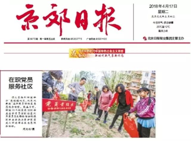 《京郊時報》報道尹麗麗老師參與的怡馨家園第二黨支部 “愛護家園清潔環(huán)境” 活動
