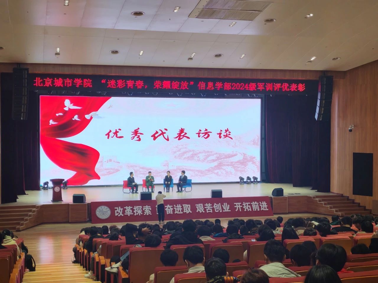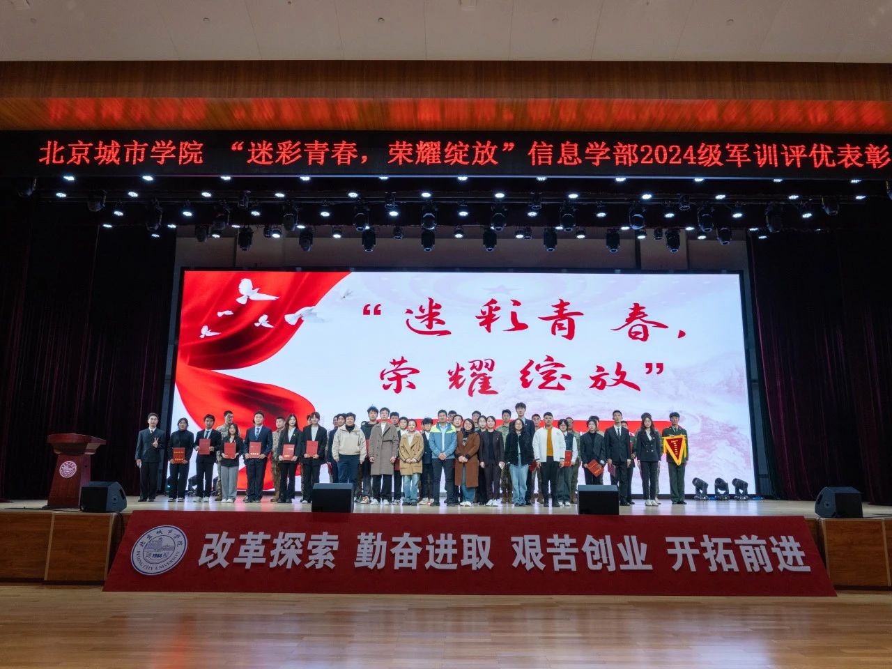 為鼓勵新同學繼續發揚在軍訓中鍛煉培養的堅韌不拔、團結協作精神,10月21日,信息學部學生工作辦公室在順義校區潮白講堂舉行了“迷彩青春,榮耀綻放”軍訓評優表彰大會。
