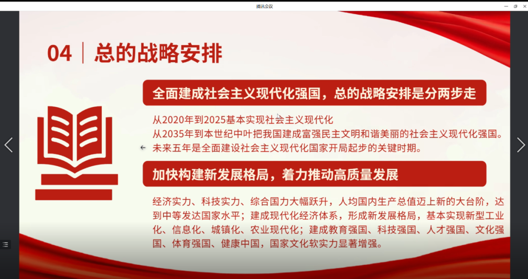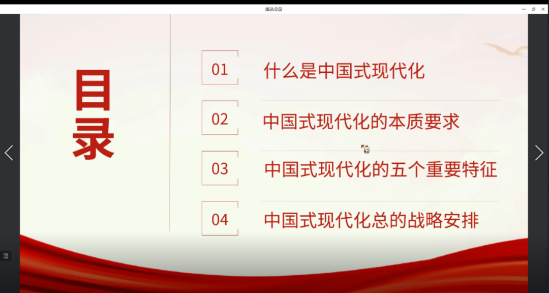 本次學習是“中國式現代化”二十大主題活動,由孫思怡,杜佳凝兩位黨員同志分別以“什么是中國式現代化”、“中國式現代化的本質要求”、“中國式現代化的五個重要特征”、“中國式現代化總的戰略安排”這四個方面為大家講述。
